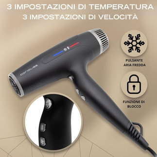Cold air button without the need to hold it with just one click. Lock function to avoid changing the temperature and speed of the fan during use, for safer styling.